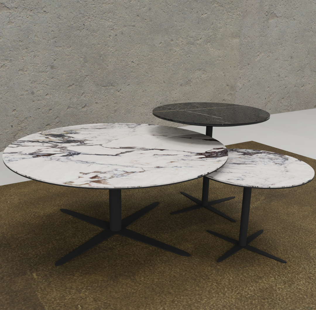 Furnish the living area with Mobi coffee tables, with tops made of ceramic, or lacquered or brushed MDF, when put together with the different sizes, they create movement throughout the whole room. Ideal for those who love the classic-modern style.