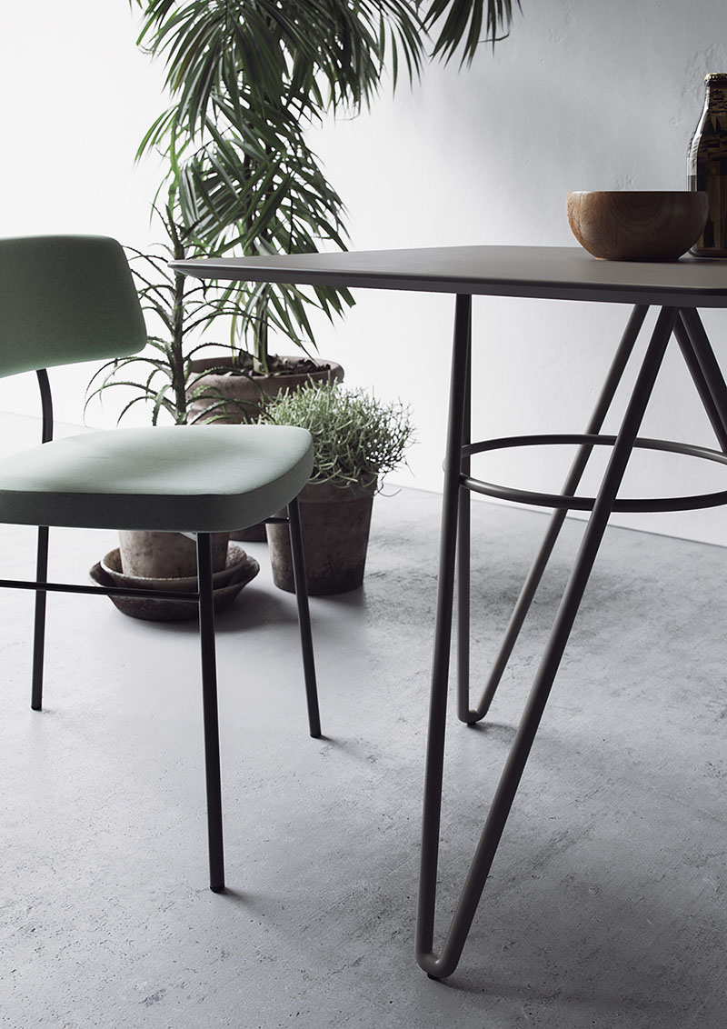 The SELF table base has soft and rounded shapes, it combines solidity and style; versatile to use both indoors and outdoors. The metal or HPL top, personalizes the environments, both round and square, with many variations and possibilities.