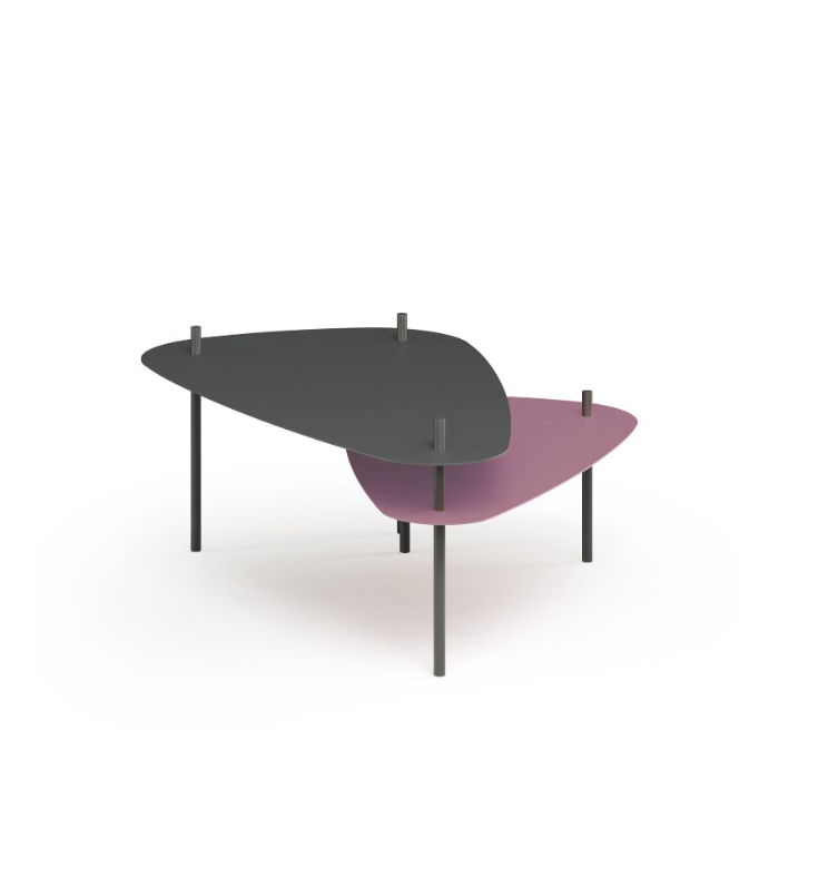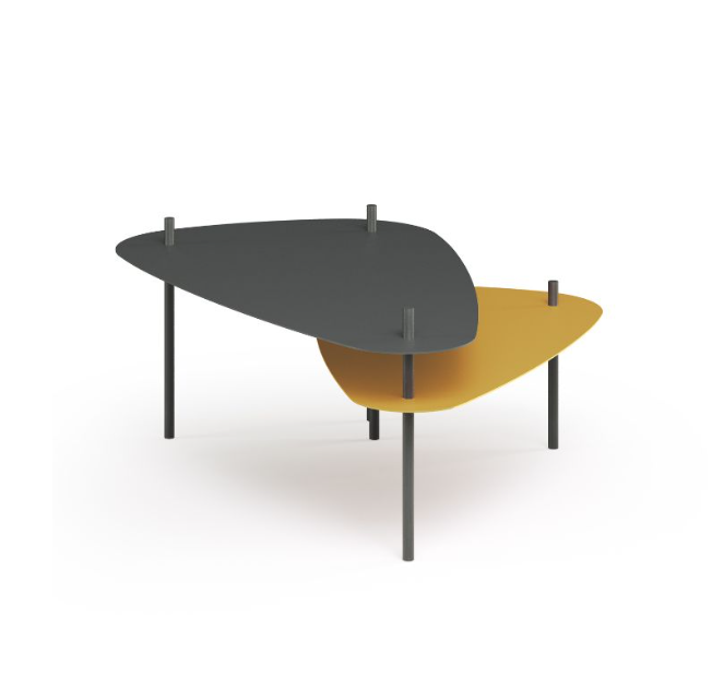 VENTAGLIO is the metal coffee table with a playful and dynamic style. Characterised by two metal tops that rotate around the foot that acts as a pivot. This allows it to be opened and transformed just like a fan. The upper top is available in graphite, while the lower one can be customised in various colours. It fits perfectly in the centre of the room or can be used as a corner table between two sofas.