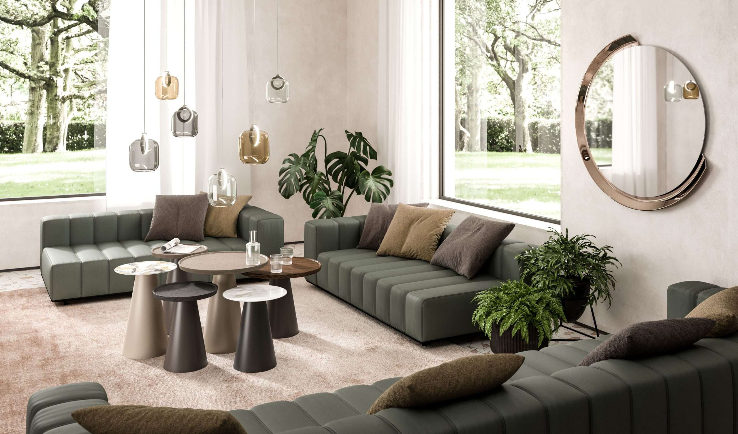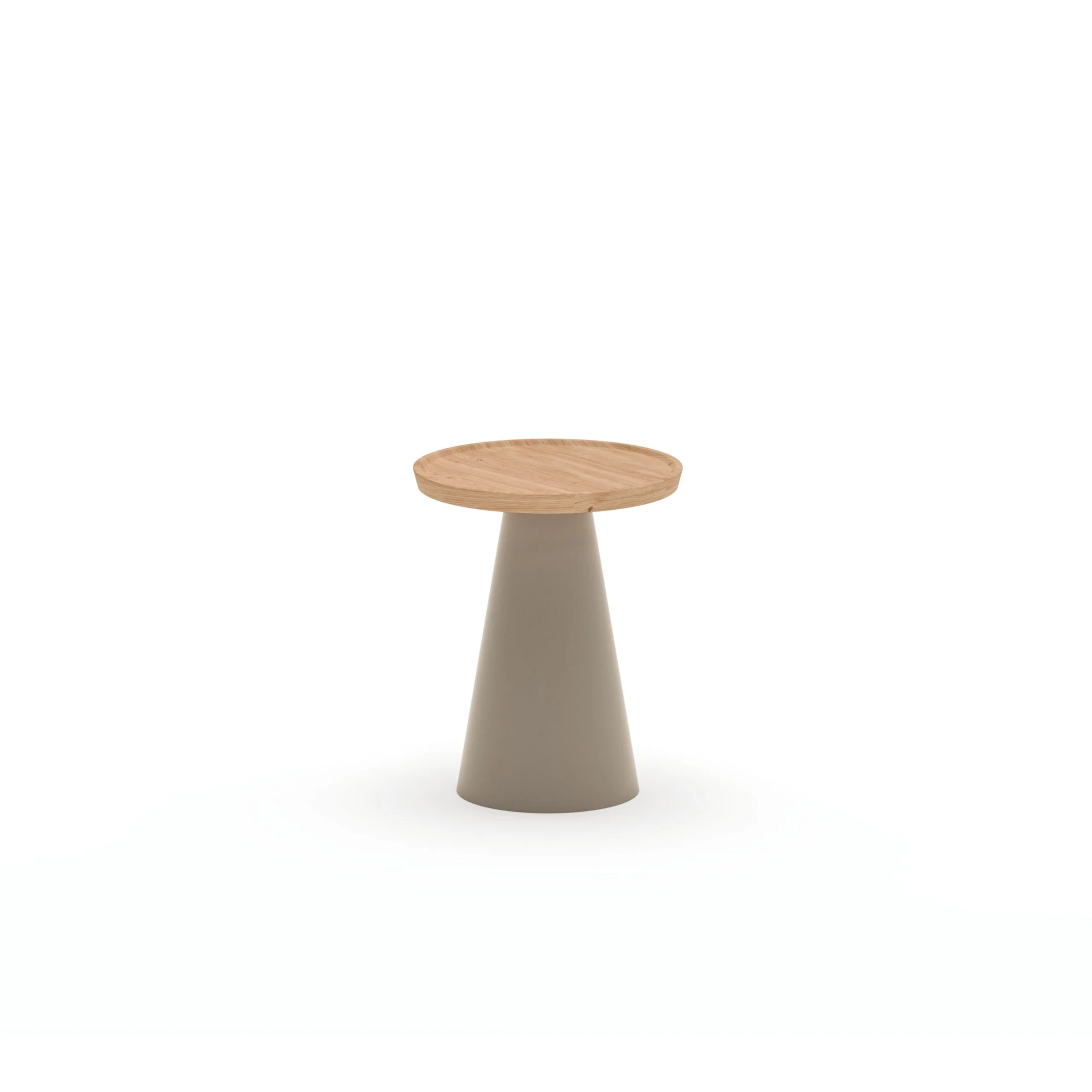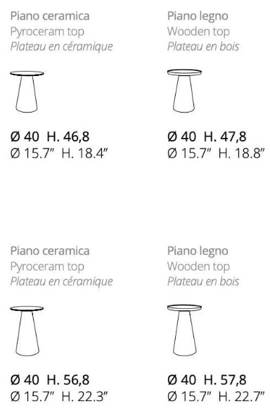 Απαλή κωνική βάση, πολυτελώς συνδυασμένη με μια αυστηρή κυκλική κορυφή. Τα χρώματα των διαφορετικών υλικών αναμειγνύονται, δίνοντας μια σπάνια αρμονία που μπορεί να τονιστεί συνδυάζοντας πολλά τραπέζια, ακόμη και διαφορετικού ύψους.