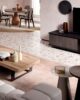 Τραπεζάκι σαλονιού με μεταλλική βάση σε δύο ύψη και επιφάνειες σε διάφορα φινιρίσματα.