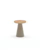 Soft conical base, luxuriously combined with a strict circular top. The colors of the different materials are mixed, giving a rare harmony that can be emphasized by combining several tables, even of different heights.