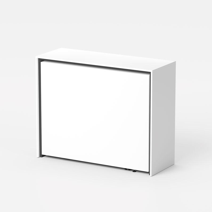Επεκτάσιμο τραπέζι κονσόλας με αμμοβολή, βαμμένο ατσάλι και φιλικό προς το περιβάλλον πάνω μέρος laminate με διαδικασία αναδίπλωσης. Το τραπέζι συνοδεύεται από 2 προεκτάσεις των 42 cm η καθεμία που βρίσκονται σε ένα δοχείο μέσα στην κατασκευή. Θέσεις: έως 6 άτομα