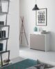 Extendable console table with sandblasted painted steel frame and eco-friendly laminate top with folding process. The table comes complete with 2 extensions of 42 cm each that are housed in a container inside the structure. Seats: up to 6 people