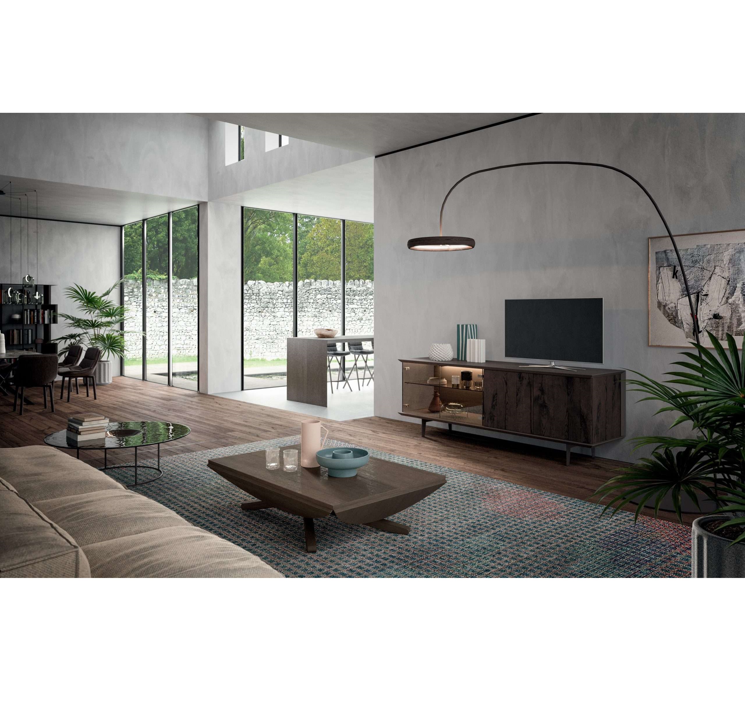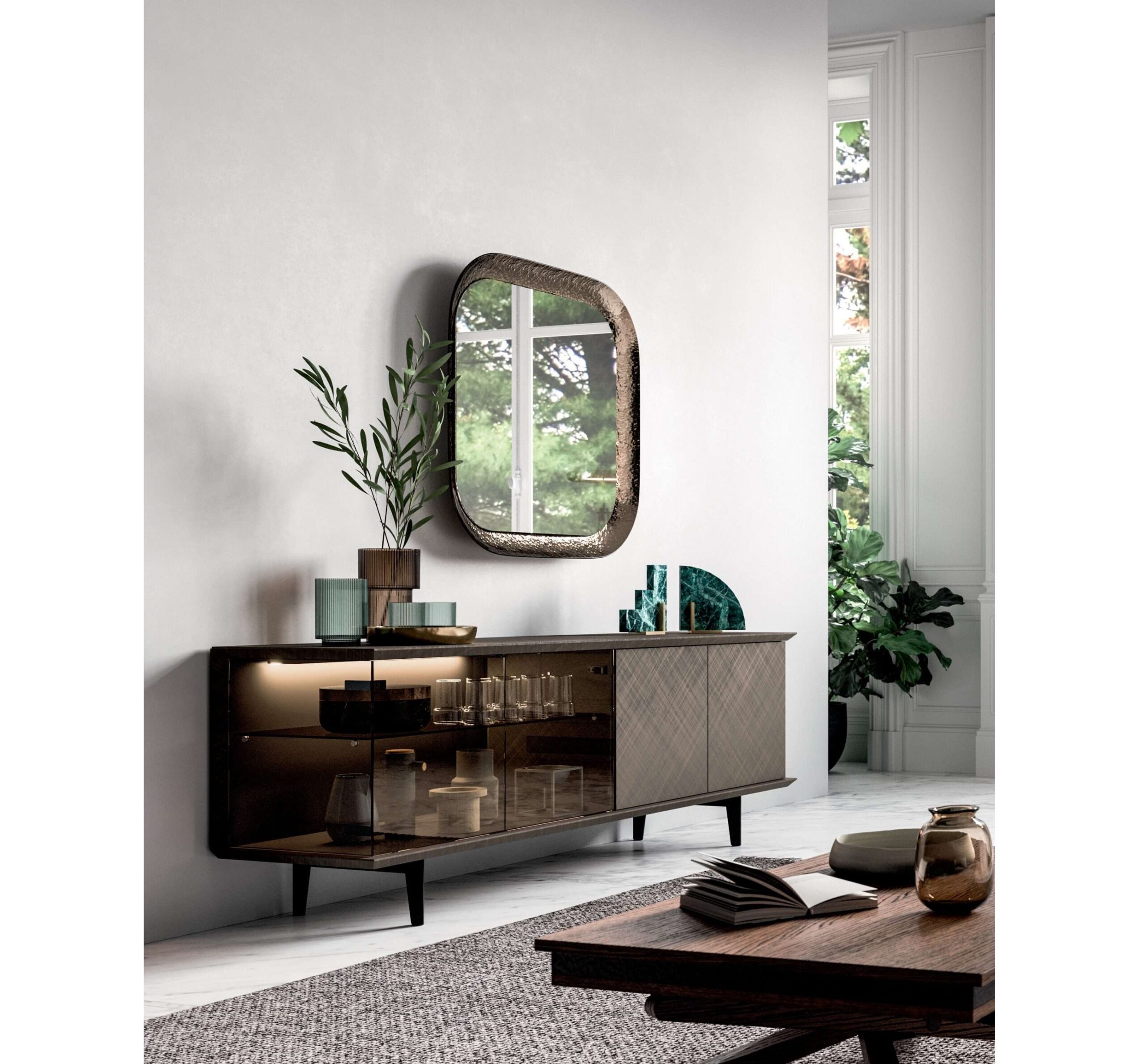Κλασικό στυλ και ελαφριά αλλά ευρύχωρη δομή εξοπλισμένη με γυάλινα ράφια. Διατίθεται σε δύο εκδόσεις: η πρώτη είναι απλή και συμμετρική, ενώ η δεύτερη γίνεται ανεπίσημη και άνετη από τις γυάλινες πόρτες μέσα από τις οποίες μπορείτε να δείτε τα φωτιζόμενα ράφια. Δύο μπουφέδες των οποίων η ποιότητα μπορεί να διακοσμήσει το περιβάλλον.