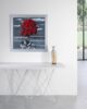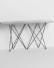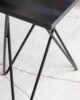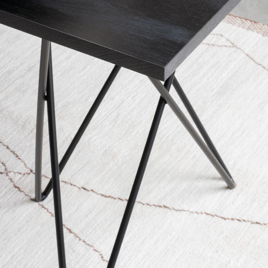 Convertible console table with book-like opening of the top in 18 mm thick eco-friendly laminate. The structure is composed of 2 swivel legs made of solid round steel Ø 12 mm painted with a sandblasted finish. Seats: up to 6 people.