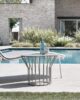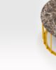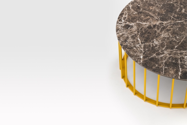 A collection of coffee tables with an original coloured metal base: equidistant spokes either extend straight up from the circular base or bend and open outwards, creating a distinctive design and movement. Oval or round tops can be made of HPL, marble or glass ceramic and can be combined with different bases, depending on their shape and size. Jump Little Table is also available in an outdoor version that brings practicality, style and colour to the garden or poolside.