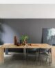 Extendable console table with structure in Ecological laminate 25+ 18 mm with aluminum reinforcement. The top and the 5 extensions (45 cm each) are made of 18 mm ecological laminate. The extendable guide is in aluminum. The folding support legs in this version are in stainless steel. Place settings: up to 12 people
