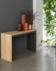 Επεκτάσιμο τραπέζι κονσόλας με δομή σε Ecological laminate 25+ 18 mm με ενίσχυση αλουμινίου. Το επάνω μέρος και οι 5 προεκτάσεις (45 cm η κάθε μία) είναι κατασκευασμένες από οικολογικό laminate 18 mm. Ο επεκτεινόμενος οδηγός είναι από αλουμίνιο. Τα πτυσσόμενα πόδια στήριξης σε αυτή την έκδοση είναι από ανοξείδωτο χάλυβα. Ρυθμίσεις μέρους: έως 12 άτομα