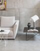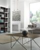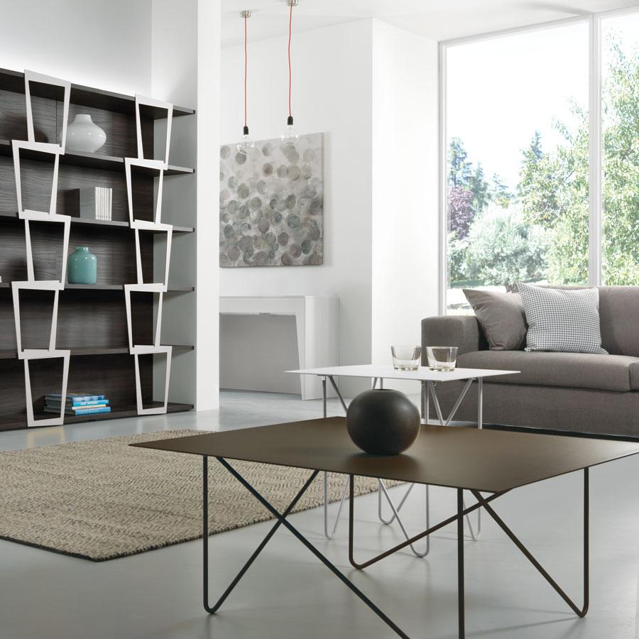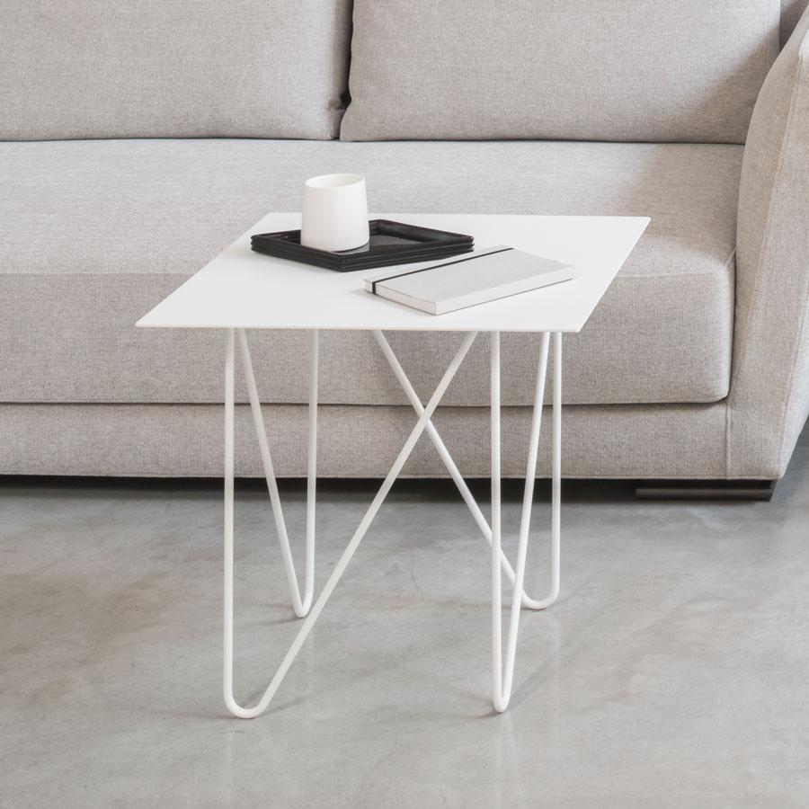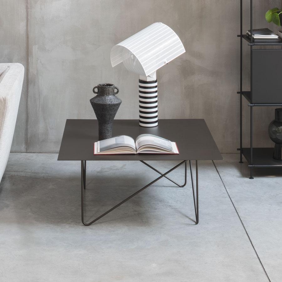 Τραπεζάκι σαλονιού τετράγωνο με δομή και επάνω μέρος από αμμοβολή βαμμένο ατσάλι.