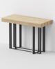 Extendable console table with sandblasted painted steel frame and eco-friendly laminate top with folding process. The table comes complete with 2 extensions of 42 cm each that are housed in a container inside the structure. Seats: up to 6 people