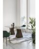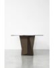 Η δομή με το πρωτότυπο σχέδιο αυτού του κομψού τραπεζιού είναι κατασκευασμένη από συμπαγή ορθογώνιο σωληνωτό ατσάλι, βαμμένο με τα φινιρίσματα σαμπλέ μας και ταιριάζει τέλεια με τις εκλεπτυσμένες γυάλινες επιφάνειες που διατίθενται σε τρεις παραλλαγές. Για το πρώτο, υπάρχουν κομψό διάφανο tempered γυαλί σε μπρονζέ ή καπνιστό γκρι, πάχους 10 mm, που επιτρέπουν στην επιβλητική δομή να λάμπει. Το δεύτερο είναι η αποκλειστική παραλλαγή γυαλιού θερμής σφυρηλάτησης, όπου το ίδιο γυαλί (μπρονζέ ή καπνιστό γκρι) θερμαίνεται μέχρι το σημείο τήξης των 740° και πιέζεται για να αποκτήσει ένα λεπτό κυματιστό αποτέλεσμα που, μέσω του κατοπτρισμού και της διαφάνειας, ανακαλεί ελαφρά την επιφάνεια κυματισμένο νερό. Εναλλακτικά στις δύο πρώτες παραλλαγές, υπάρχουν επίσης καινοτόμα γυάλινα μπλουζάκια ψηφιακά τυπωμένα με Sahara noir, καφέ Emperador και λευκό μάρμαρο Calacatta. Η λάμψη και οι αντανακλάσεις του εξαιρετικά διαυγούς γυαλιού, σε συνδυασμό με την ποιότητα της εκτύπωσης πολύ υψηλής ανάλυσης, κάνουν τον ορισμό και τα χρώματα της μαρμάρινης διακόσμησης εκπληκτικά.