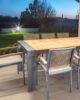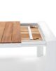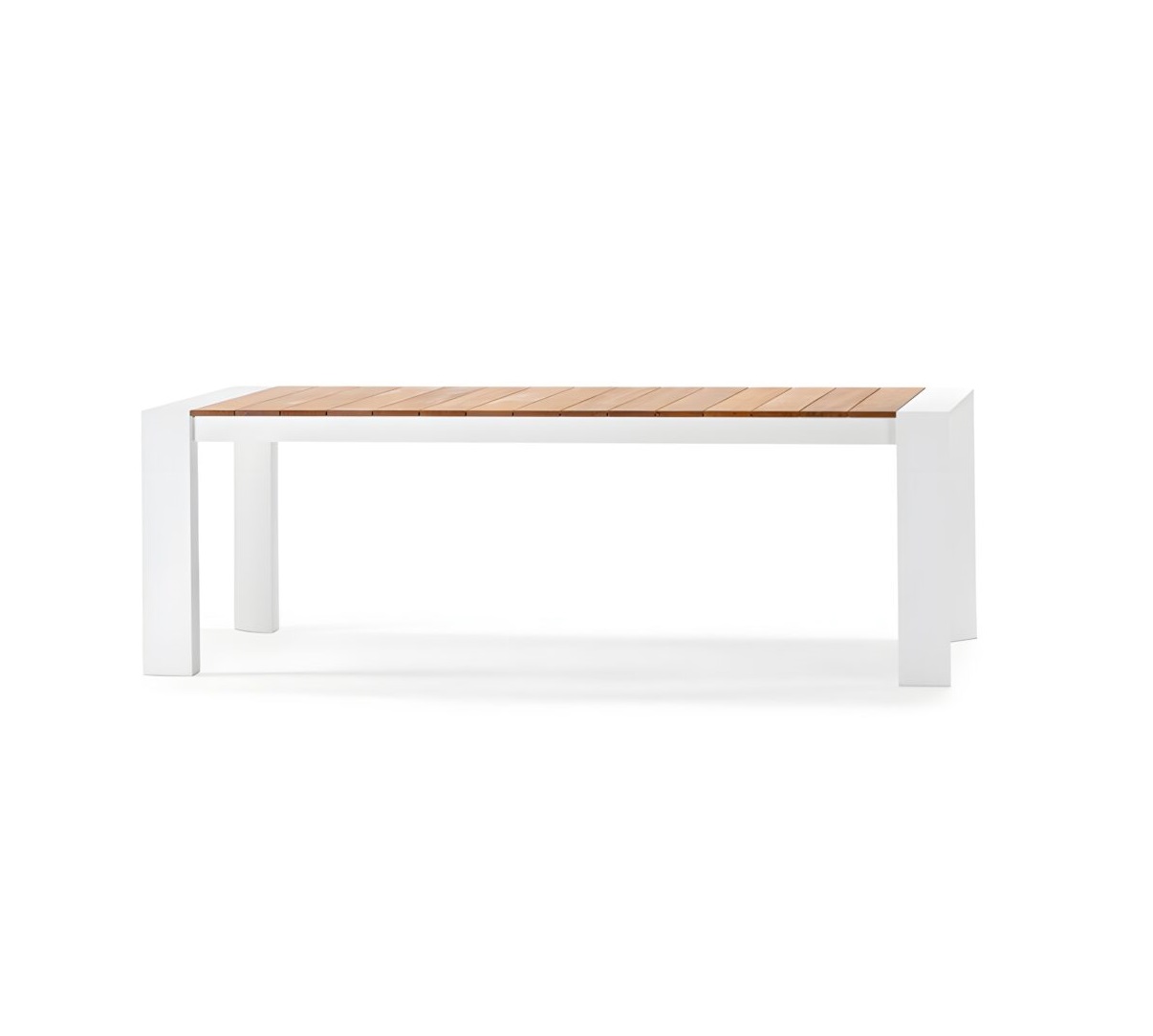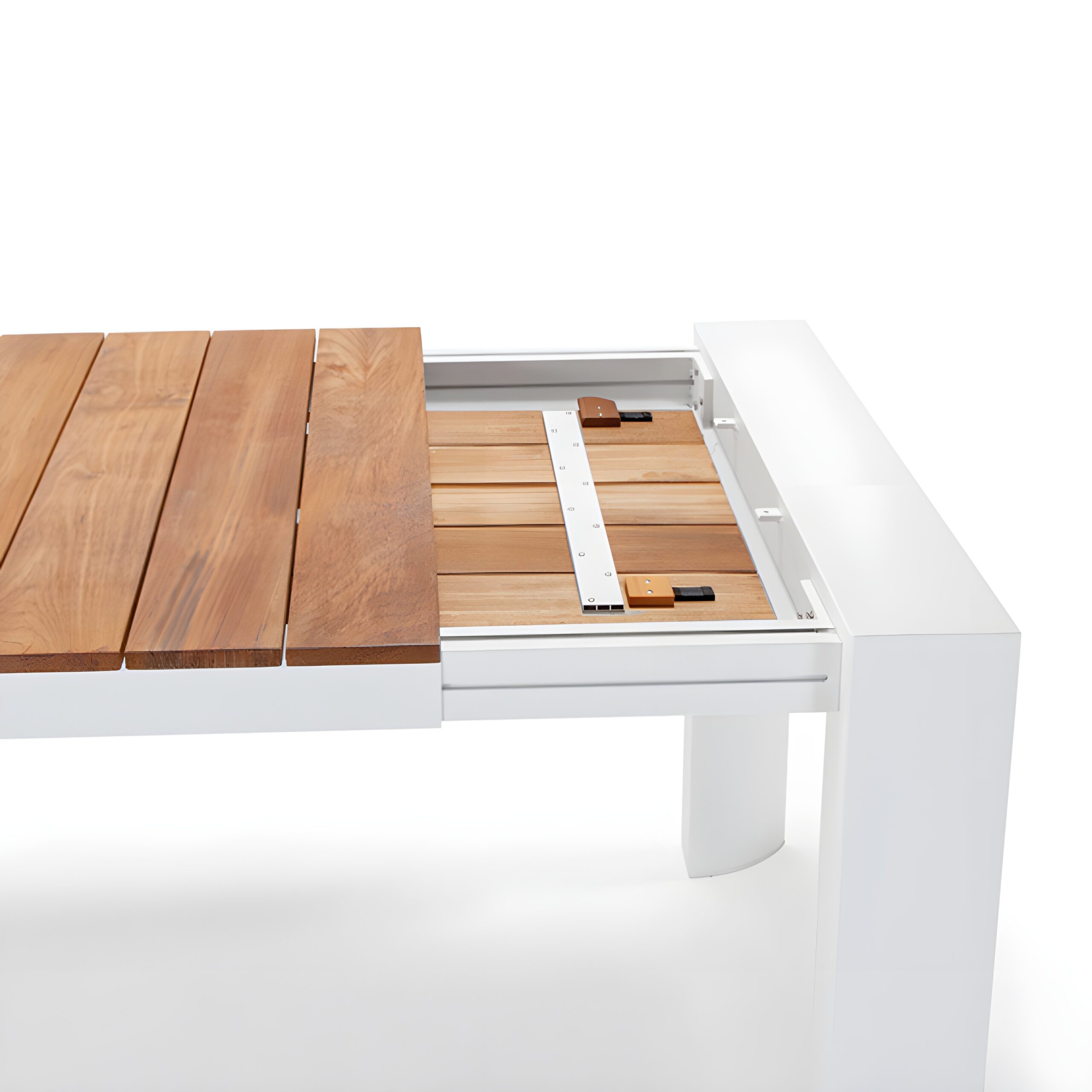 Επεκτάσιμο τραπέζι αλουμινίου με ακατέργαστα πηχάκια από μασίφ τικ.