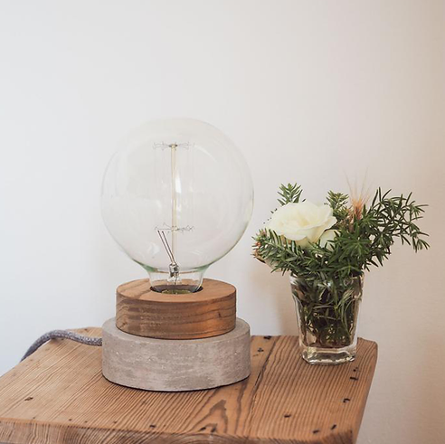 Table lamp with big vintage ambar light bulb 12,5 cm diameter, LED 4w – 320 lumen or Carbon 40w – 150 lumen, yellow light tone.