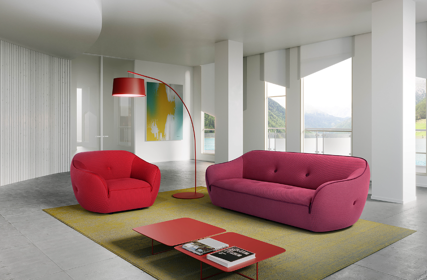 BEBOP is the not at all banal sofa characterized by its colorful elastic covering and Lycra details. Available in different configurations, BEBOP is also a nice armchair.