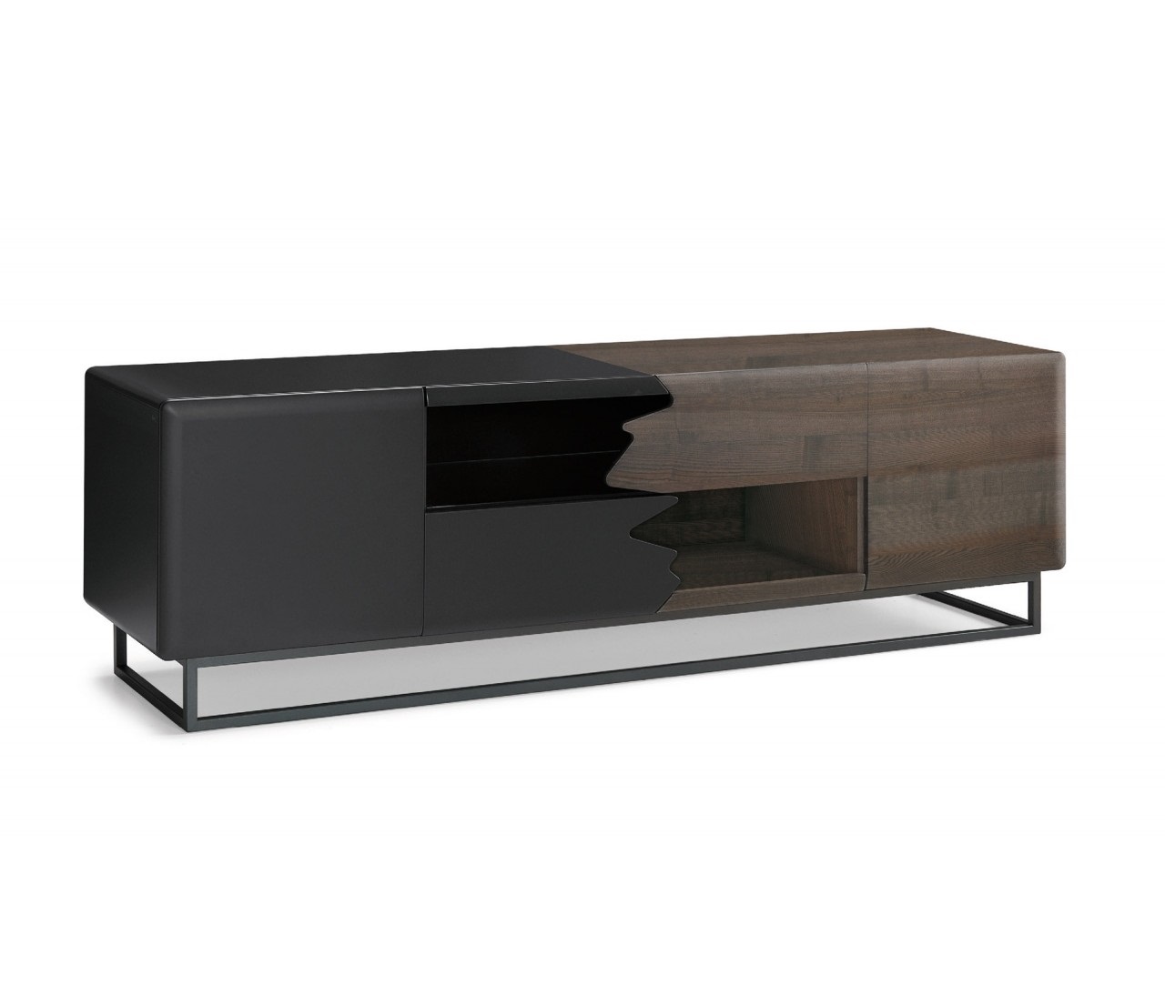 The Kali TV stand features half a solid wood structure, while the other half is made of MDF in which you can choose the lacquered effect. A great deal of space thanks to its four doors and open compartment, you can fit all the devices and accessories you need.