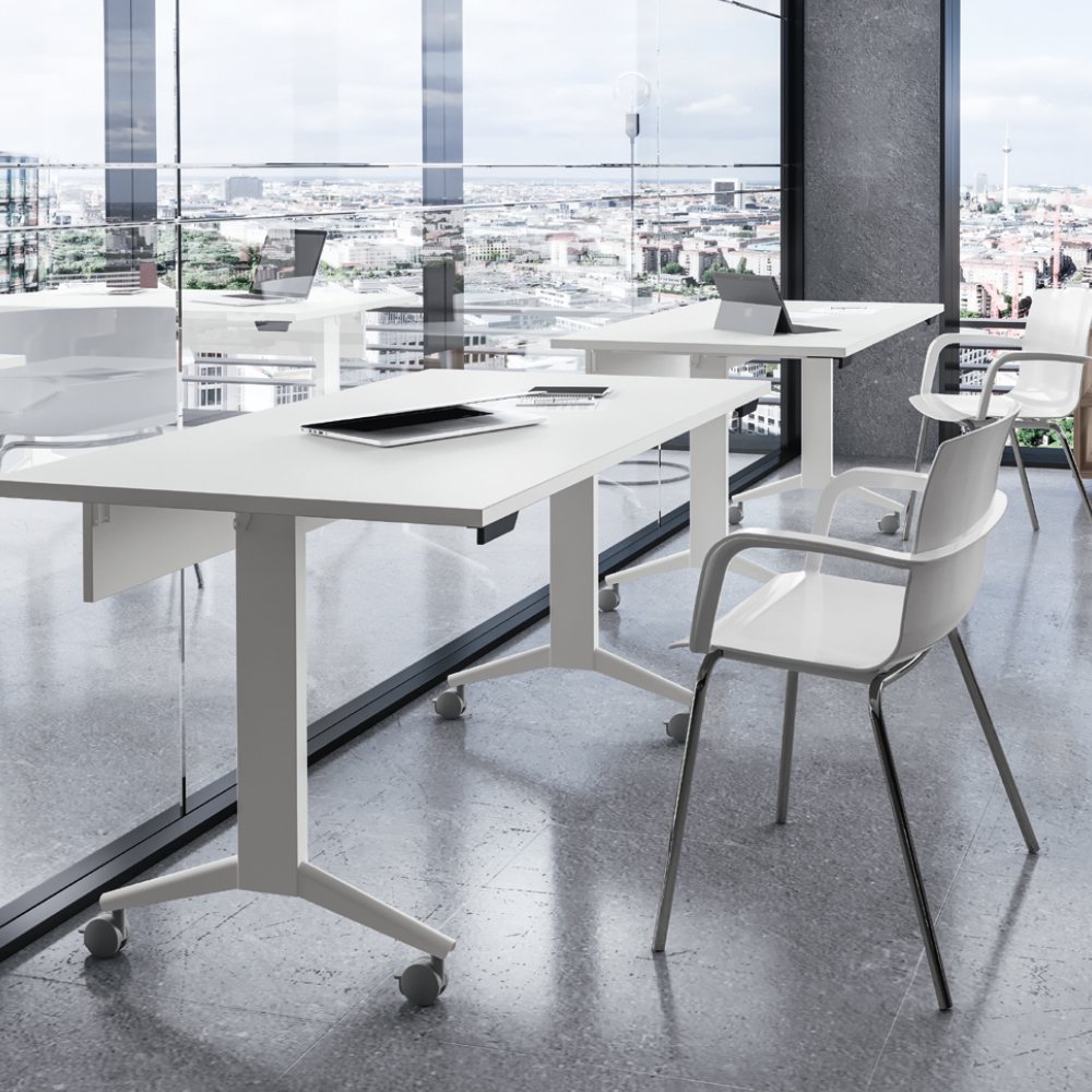 Multifunction tables with folding structure, 120/140/160/180 depth top. 80, also available in the version with fixed chromed steel frame of 80/120/160 depth. 80.